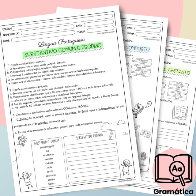 Nosso material inclui: → Definições detalhadas: tipos de substantivo, desde os simples até os mais complexos, com explicações claras e completas. → Atividades práticas: Engaje-se com uma variedade de exercícios projetados para consolidar seu conhecimento de forma eficiente e interativa.