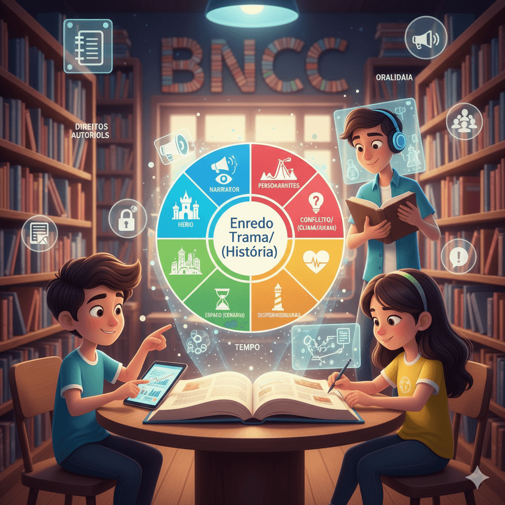 5 elementos da narrativa em ficha de análise literária completa, alinhada à BNCC