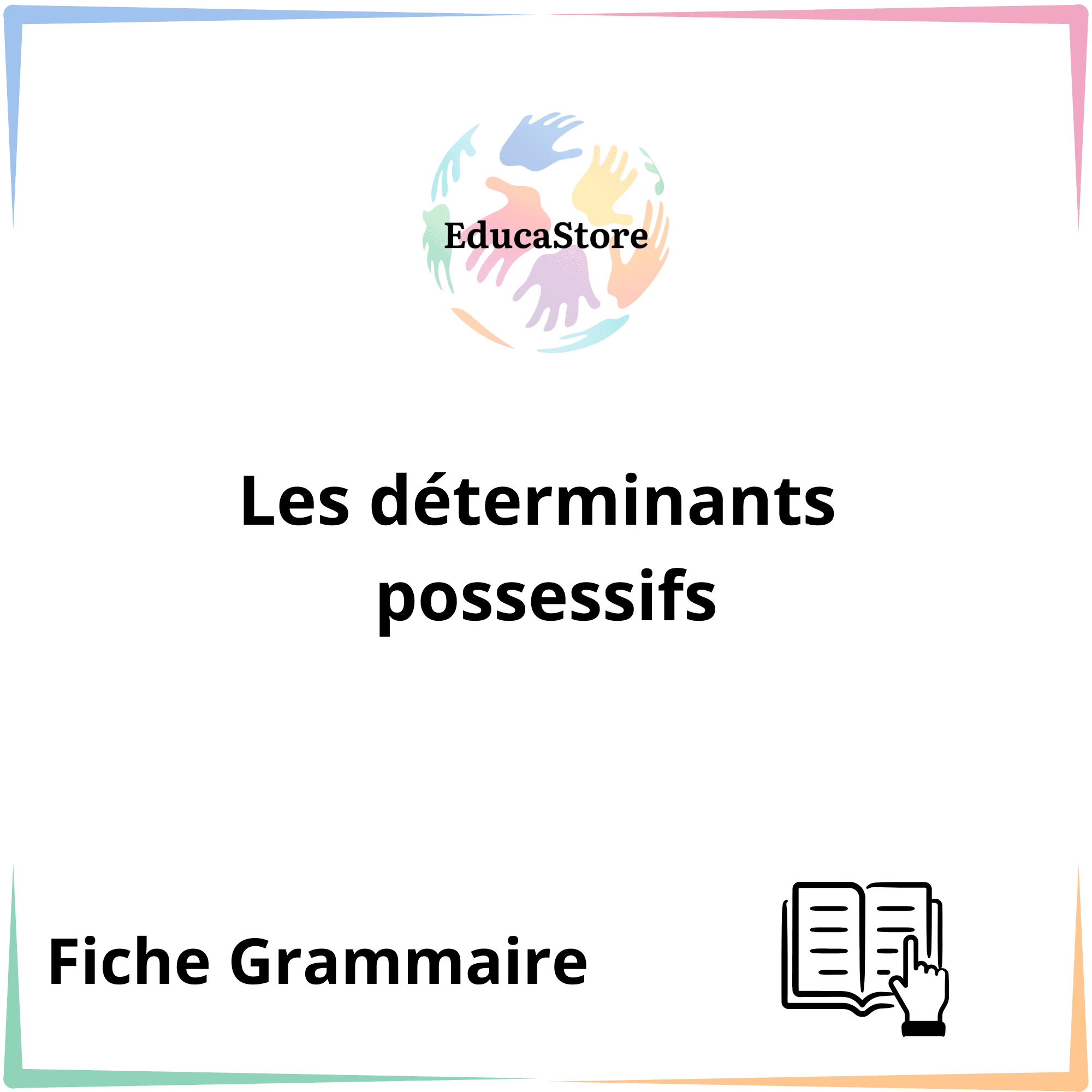 Une fiche de grammaire claire et visuelle pour apprendre et comprendre facilement les déterminants possessifs en français. Elle propose une explication simple, un tableau récapitulatif et des exemples guidés pour faciliter l’apprentissage.